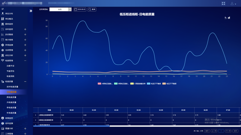供电质量(谐波失真度THD/最大、最小、平均值/电压合格率、三相平衡度)实时分析功能 ,提高用电质量。