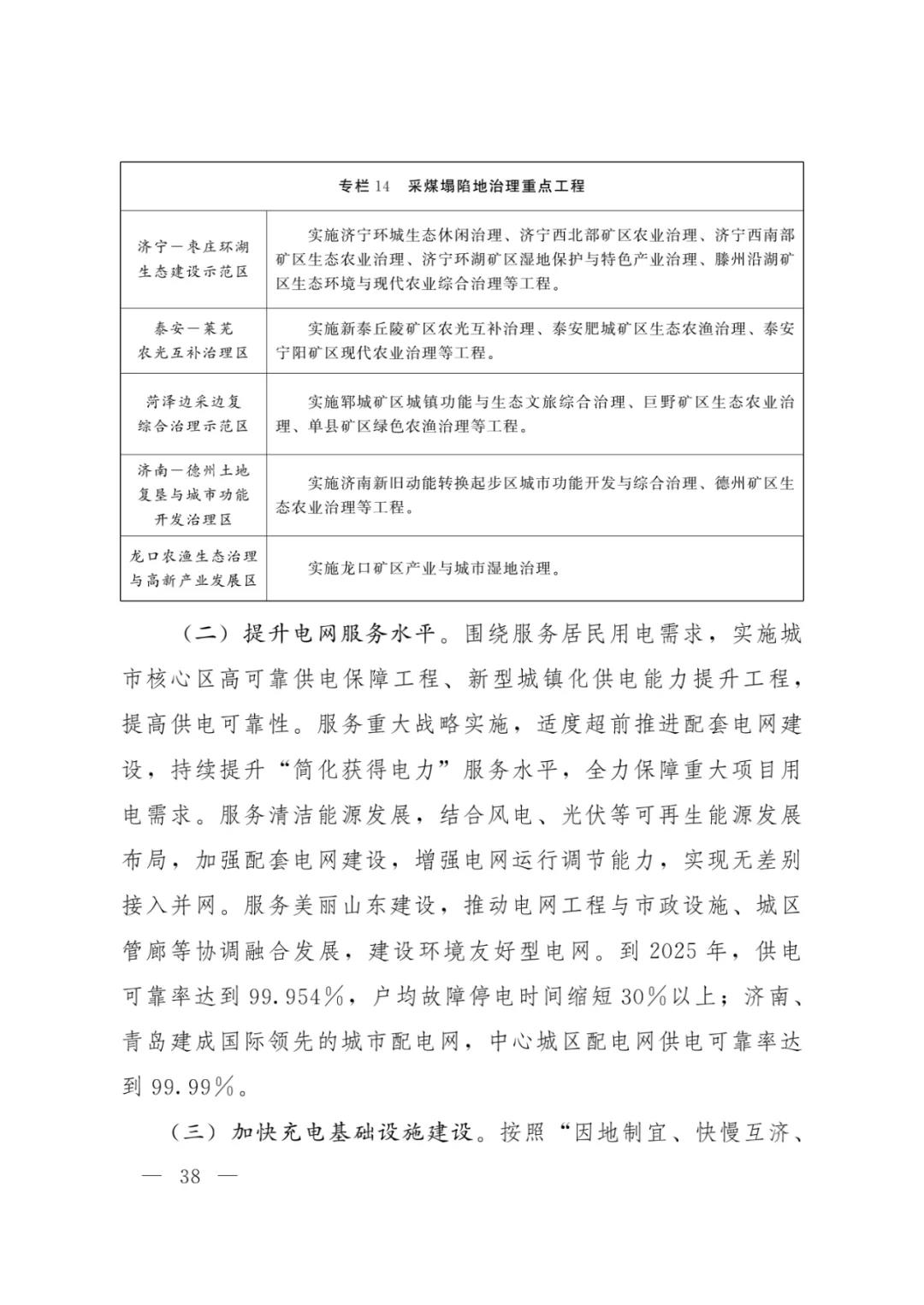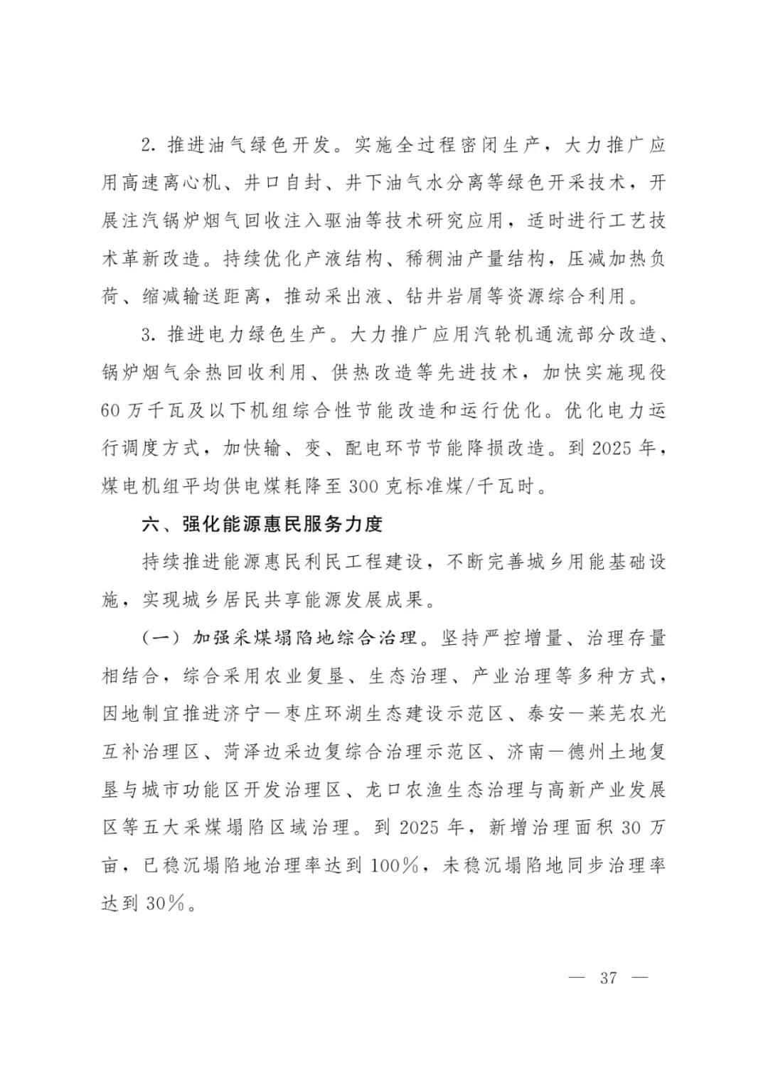 加快发展集中式光伏。充分利用潍坊、滨州、东营等市盐碱滩涂地和济宁、泰安、菏泽、枣庄等市采煤沉陷区,重点打造鲁北盐碱滩涂地千万千瓦级风光储输一体化基地、鲁西南采煤沉陷区百万千瓦级 “光伏+”基地。鼓励采用农光互补、渔光互补、盐光互补、生态治理等模式,因地制宜发展 “光伏+”集中式电站。